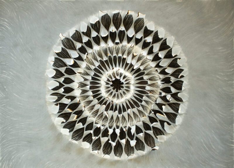 Влијанието од глобалните случувања, неизбежно се рефлектираше во фотографиите кои содржат повторувачки елементи на маски и ракавици кои формираат вистинска решетка, позади која се наоѓа уста која останува „Без здив“. Тие се визуелна манифестација на стравот, безизлезната ситуација и ограничената слобода како бариера во општењето со светот и претставува еден вид релација на видливиот свет со невидливите опасности. Тоа се дела настанати преку истражување, експериментирање и комбинација на фотографија (фотомонтажа) и други материјали.