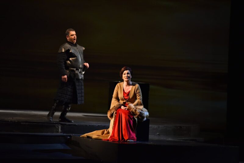 Во оперската претстава ќе настапи врвна домашна солистичка екипа, предводена од нашата првенка Ана Дурловски во насловната улога, која продолжува да остварува блескави успеси на европската и светска оперска сцена восхитувајќи ги критичарите и публиката со својата совршена техника и интонативна прецизност, Марјан Јованоски, Ѓорѓи Цуцковски, Никола Стојчески, Александар Стефаноски, Марика Поповиќ и Јане Дунимаглоски во придружба на хорот и оркестарот на Националната опера и балет.