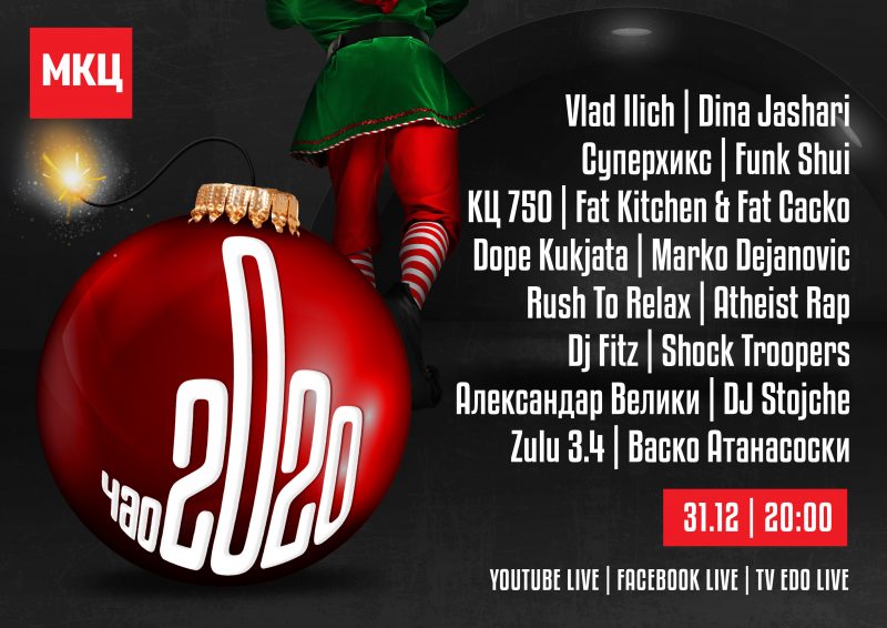 Под слоганот „Чао 2020“, ЈУ Младински културен центар ќе емитува новогодишна програма на 31 декември 2020, со почеток во 20 часот на фејсбук-страната и јутјуб-каналот на МКЦ, но и премиерно на локалната скопска телевизија Едо.