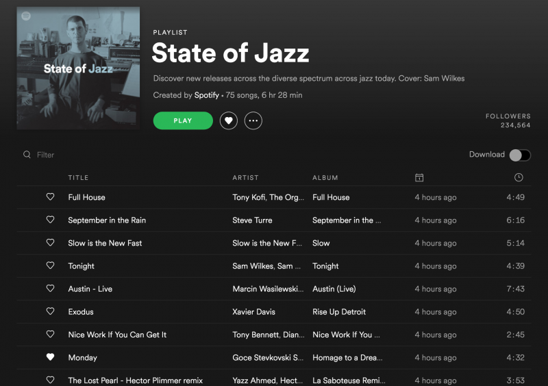 Интересно е што Monday се појави на оваа листа уште на денот на објавувањето и тоа на високото 8 место. Ваквата поддршка од Spotify ни влева оптимизам дека може да се очекува во следните недели и други композиции од албумот на Гоце Стевковски Септет да се најдат на популарните плејлисти на водечкиот сервис за музички стриминг во светот.