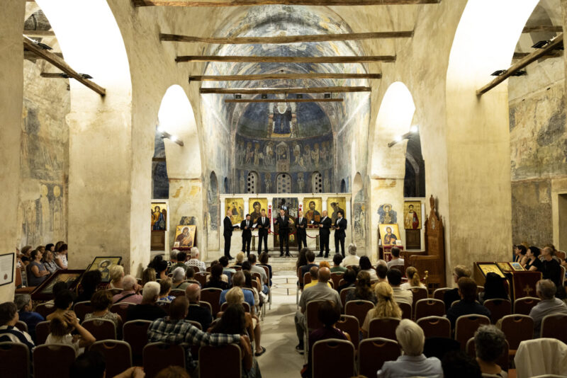 -Одлучивме на публиката во овој прекрасен храм да ѝ се претставиме со различна програма, пред сè, духовни композиции од руски и српски автори. Тоа е нешто што ја прави основата на нашиот репертоар, имајќи предвид дека хорот „Свети Серафим Саровски“ од Зрењанин, Србија, оваа година одбележува 35 години од постоењето. Тоа е дел од репертоарот што ние многу долго и многу често го негуваме посветено. Освен тоа, имаше и неколку обработки на руски народни композиции. Целата музика беше прилагодена на црковниот амбиент. Публиката имаше можност да слушне и две далматински клапи кои говореа за животот, љубовта, минливоста и слично. Самиот крај беше посветен на неколку обработки на српски народни песни.Сметавме дека треба да има разноликост во нашиот репертоар бидејќи знаеме дека во публиката има многу туристи кои доаѓаат од различни краишта и сакаат да слушнат нешто што е невообичаено за еден ваков мал машки хорски состав, вели диригентот на хорот „Свети Серафим Саровски“, Божидар Црњански.