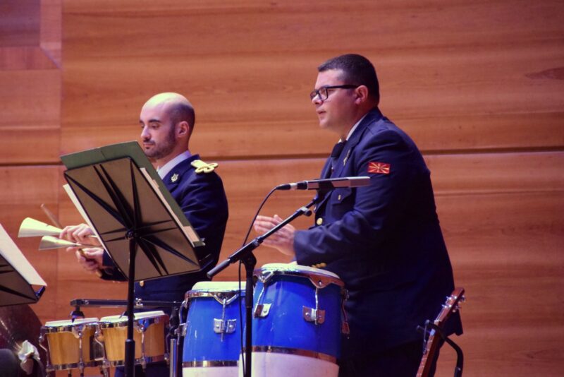 По интонирање на државната химна, аудиториумот во исполнетата сала имаше можност да проследи синхронизирана изведба на повеќе нумери од повеќе светски и македонски композитори. Концертот на воените оркестри од сојузничките земји, како и од земјите од регионот и пошироко, прерасна во проект во рамките на меѓуармиската соработка, кој традиционално се изведува неколку години во пресрет на Нова година или друг државен празник, претставувајќи го силното партнерство и трајните врски на пријателството и соработката.