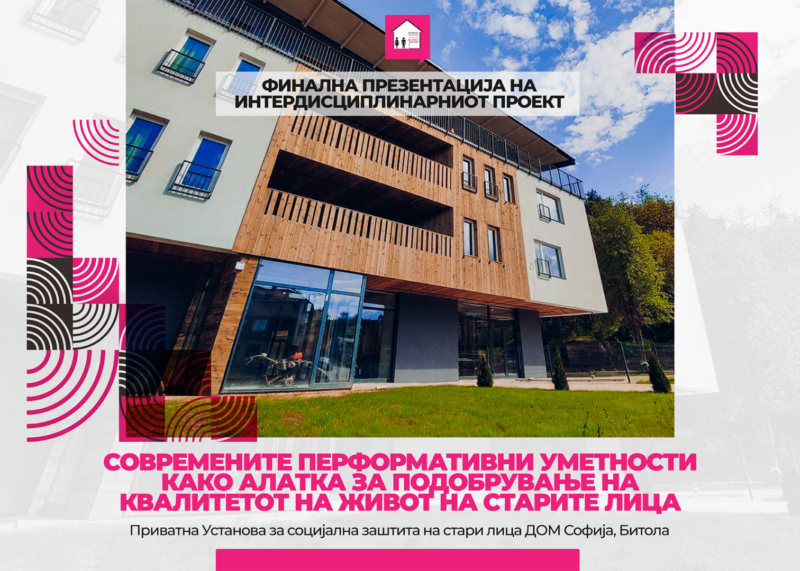 На 16 ноември, вторник, во 14 часот, исто така во просториите на приватната установа за социјална заштита на стари лица „Дом Софија“ – Битола, „Интимен театар“ ќе одржи финална презентација на резултатите од мноштвото работилници одржани со старите лица во склоп на интердисциплинарниот проект „Современите перформативни уметности како алатка за подобрување на квалитетот на живот на старите лица“. И овој проект е исто така поддржан од Министерството за култура.