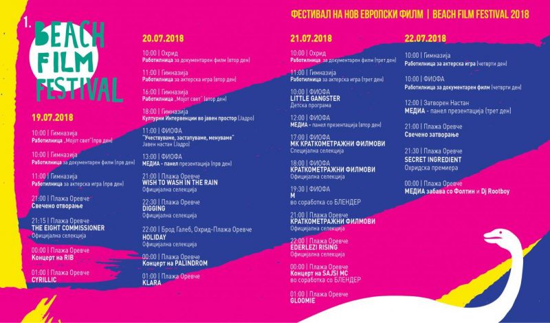 Во меѓувреме на плажата Оревче ќе играат два филма од официјалната селекција, турскиот Wish to wash with rain од 21 часот и македонскиот Digging од 22:30 часот. Digging е игран филм снимен во независна продукција на MI Film. Филмот е своевиден експеримент – снимен со речиси никаков буџет. Работен е по истоимениот текст на Кристијан Винклер, кој беше поставен во Македонскиот народен театар во април 2017 година. Благодарение на сите филмски професионалци вклучени во овој проект, филмот е снимен во само 6 дена минатиот јули. Режисери на филмот се Ивица Димитријевиќ и Мартин Иванов, а во него играат Гораст Цветковски, Ивица Димитријевиќ и Александар Ѓоргиески.