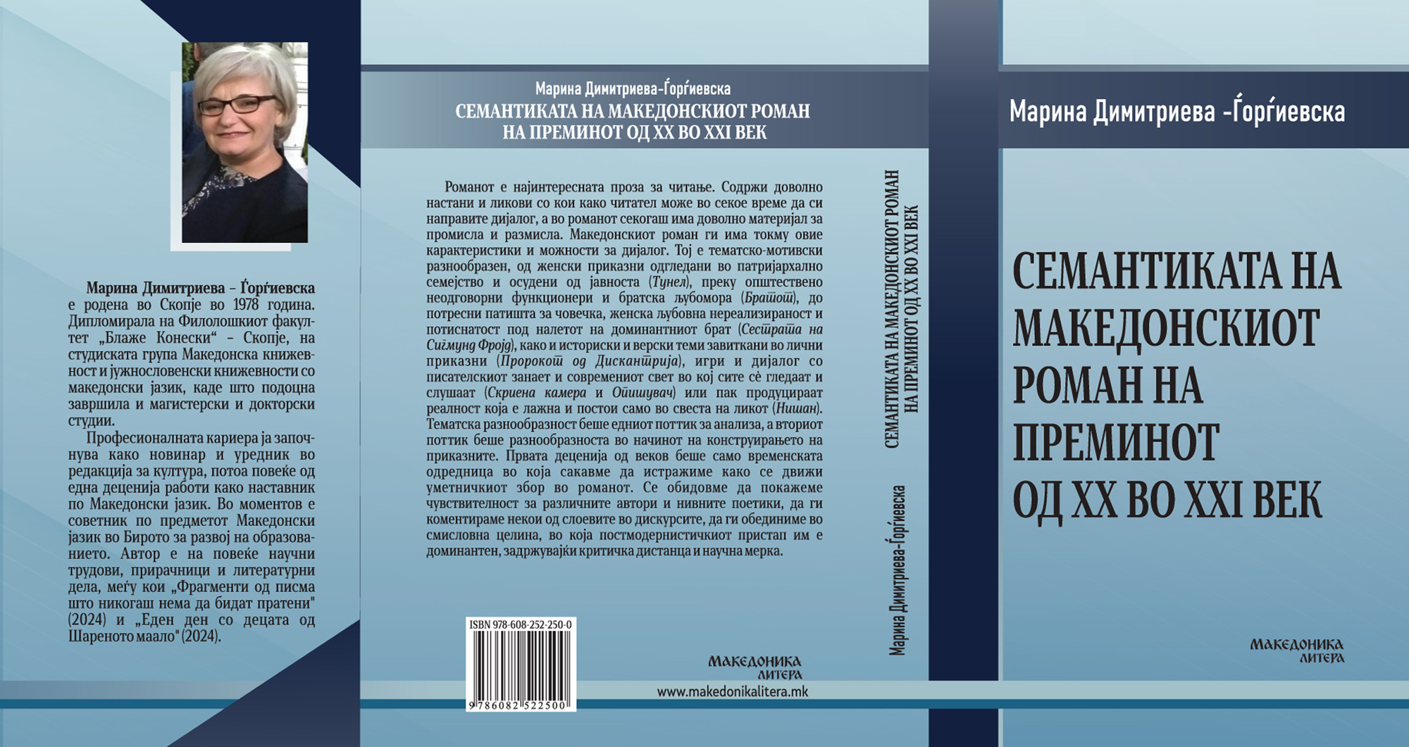 „Македоника литера“ неодамна ја објави книгата од областа на теоријата на литературата „Семантиката на македонскиот роман на преминот од ХХ во XXI век“ од Марина Димитриева-Ѓорѓиевска.