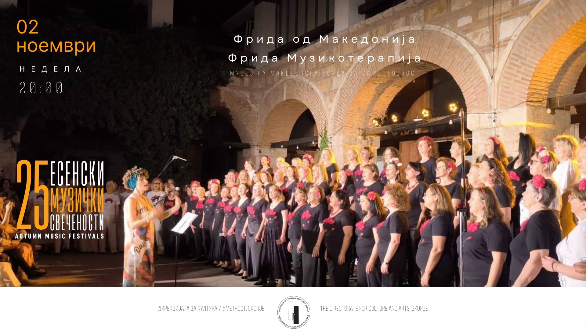 В недела со почеток во 20 часот во Музејот на македонската борба за самостојност ќе се одржи концерт на женскиот хор „Фрида од Македонија“ насловен „Фрида Музикотерапија“, во рамки на 25. издание на „Есенски музички свечености“.