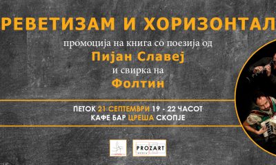 Во кафулето „Цреша“ денеска (21 септември) ќе се случи скопската промоција на книгата поезија „Креветизам и хоризонтала“ од Пијан Славеј, што е уметничко име на Бранислав...