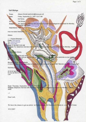 Албанскиот премиер, Еди Рама (54), слика на документи и хартии што ги користи во секојдневниот живот. Често овие цртежи ги печати како тапети и ги продава.