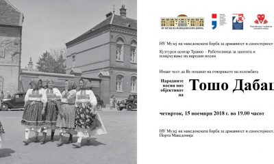 Изложба „Народните носии низ објективот на Тошо Дабац“ ќе биде отворена денеска (15 ноември) во Порта Македонија со почеток од 19 часот. Организатор на изложбата е...