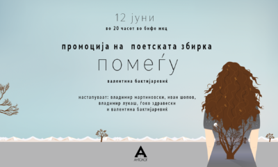 На 12 јуни (среда) со почеток од 20 часот во Младинскиот културен центар ќе биде промовирана поетската книга „Помеѓу“ од поетесата Валентина Бактијаревиќ, издание на издавачката...