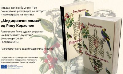 Издавачката куќа „Готен“ ве поканува на разговор со авторот и промоција на книгата „Медицински роман“ од финскиот писател Рику Корхонен. Разговорот и промоцијата ќе се одржат...