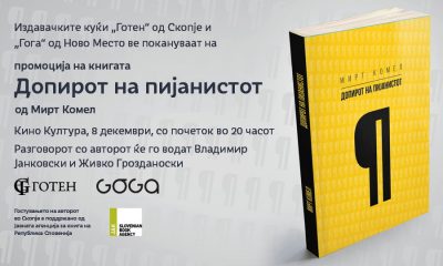Книгата „Допирот на пијанистот“ од словенечкиот писател Мирт Комел ќе биде промовирана на 8 декември во киното „Култура“ со почеток во 20 часот. Од издавачката куќа...