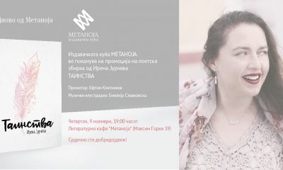 Денеска, 9 ноември, во „Литературно кафе Метаноја“ („Максим Горки“ бр. 19) со почеток во 19 часот ќе се одржи промоција на поетската збирка „Таинства“ од Ирена...