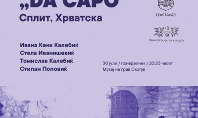 Вечерва со почеток во 20.30 часот во Музеј на град Скопје, ќе се одржи концерт на мандолинскиот квартет „Da Capo“ од Сплит, Хрватска (Ивана Кенк Калебиќ,...