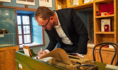 Министерот за култура и туризам, Зоран Љутков, вчеравечер во музејот посветен на албанскиот писател со македонско потекло, Стерјо Спасе, во селото Глобочани, општина Пустец, Р. Албанија,...