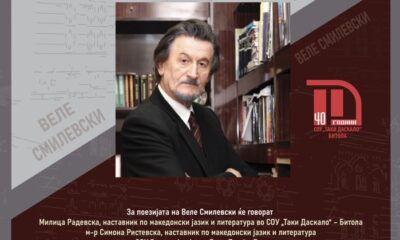 Во Културно-информативниот центар, во свечената сала на Офицерскиот дом во Битола, утре (14 мај) во 12 часот ќе се одржи портрет на поетот Веле Смилевски. За...