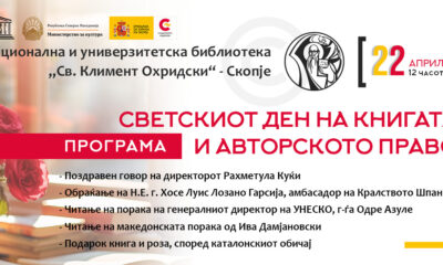 По повод претстојниот Светски ден на книгата и авторското право, Националната и универзитетска библиотека „Св. Климент Охридски“ од Скопје на 22 април (понеделник), со почеток во...