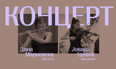 На 6 април (сабота), во 18 часот, во КСП „Центар Јадро“, ќе се одржи концерт на Дина Марковска (флејта) и Јована Удовиќ (виолина). Програма: Јована Удовиќ:...