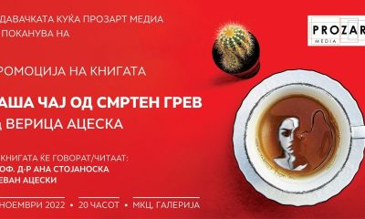 Промоцијата на третата книга на писателката Верица Ацеска „Чаша чај од смртен грев“ ќе биде организирана вечерва во 20 часот во Младинскиот културен центар (Галерија) во...