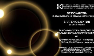 Годинашните добитници на наградата „Златен објектив” за 2019 година, која Кинотеката на Северна Македонија ја доделува за исклучителен придонес во македонската кинематографија, се филмските работници Димитар...