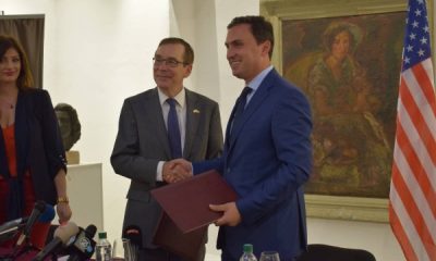 Mинистерот за култура, Асаф Адеми, и амбасадорот на Соединетите Американски Држави во Република Македонија, Џес Бејли, денеска во Чифте амам присуствуваа на потпишувањето договор за грант...