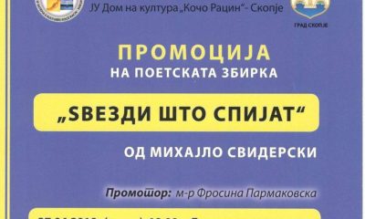 В петок, 27 април, во Домот на култура „Кочо Рацин“ (Дом на градежници) со почеток од 19 часот ќе биде промовирана збирката песни „Ѕвезди што спијат“ од Михајло...