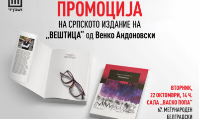 Утре, 22 октомври, во 14 часот, во салата „Васко Попа“ на белградскиот Саем на книгата, ќе се одржи промоција на српското издание на романот „Вештица“ на...