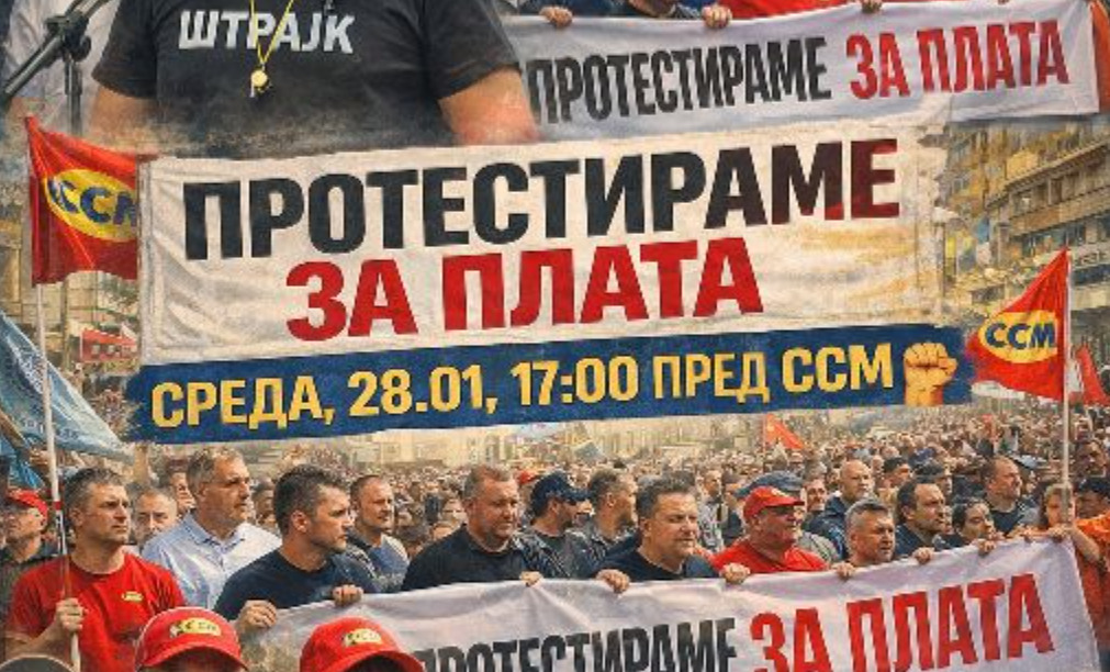Денеска со почеток во 17:00 часот во организација на Сојуз на синдикатите на Македонија (ССМ) ќе се одржи протест со почеток на траса на движење од пред зградата на ССМ на улицата „Мирче Ацев“, лево по улицата „Филип 2-ри Македонски“, десно по улицата „11-ти Октомври“, право по улицата „Димитрие Чуповски“, десно по улицата „Васил Главинов“, право по булеварот „ВМРО“, лево по булеварот „Илинден“ до пред Владата.