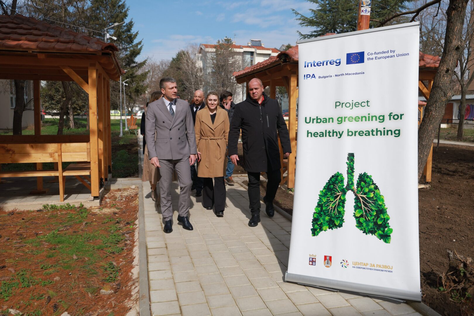 При посета на општината се изврши и увид во проектот „Урбано зеленило за здраво дишење“, кој се реализира во рамки на првиот повик од ИПА III Програмата за прекугранична соработка Interreg (VI-A) со Бугарија, во рамки на Приоритет 1: Позелен пограничен регион.