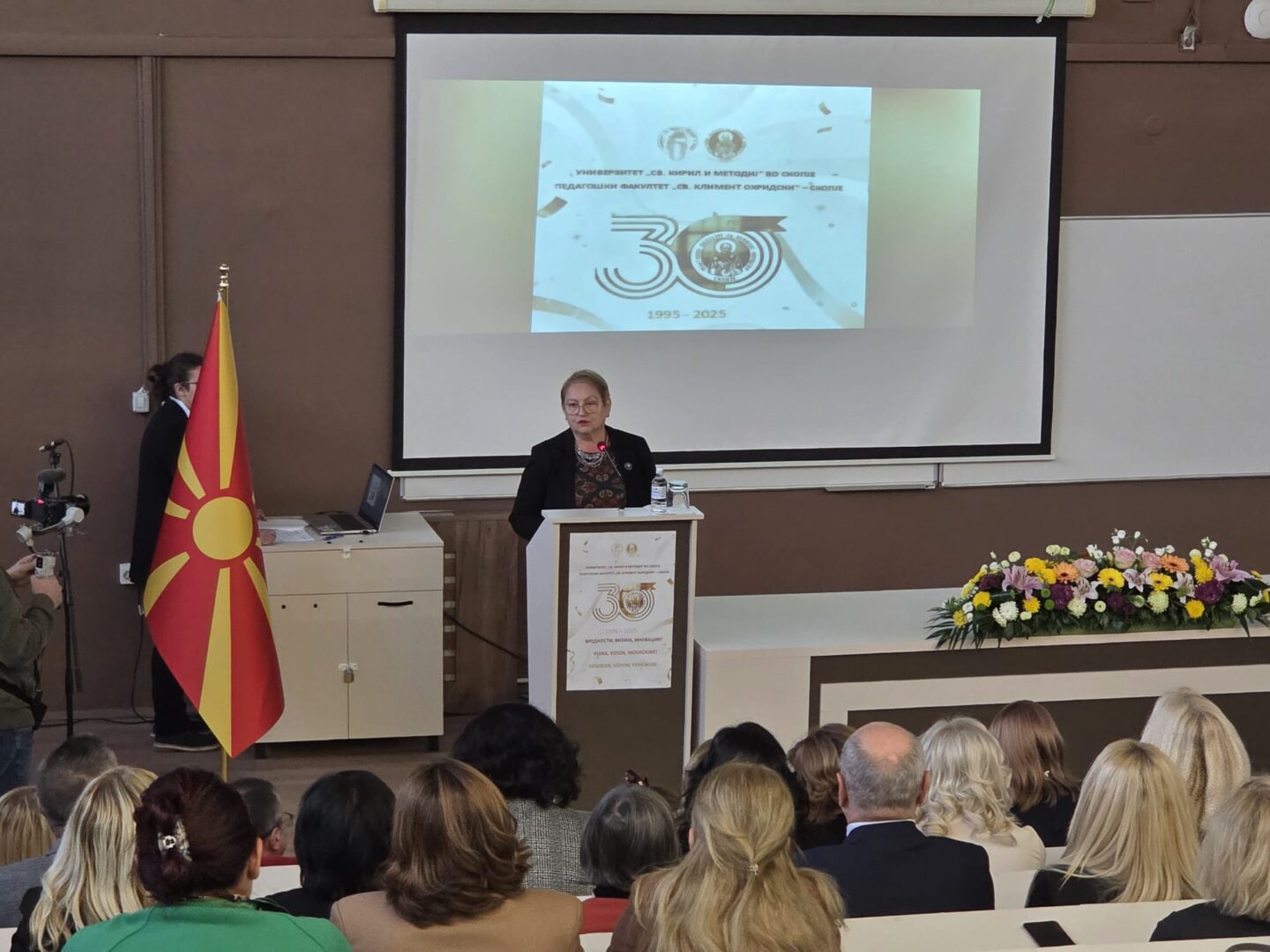 За таа цел, деканот на факултетот, Влатко Неделковски, продеканката за настава, Андријана Мисовски и професорите Иван Анастасовски и Серјожа Гонтарев ја запознаа претседателката со предлог проектот, односно со планираните истражувања и временската рамка во којашто ќе се одвиваат (2026-2028), очекуваните резултати и стратешката одржливост.