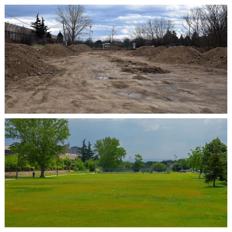 Изминатиов период екипите на Град Скопје работеле на расчистување на просторот и рамнење на теренот, каде е посадена нова трева, а во наредниот период следува и садење на планираното зеленило.