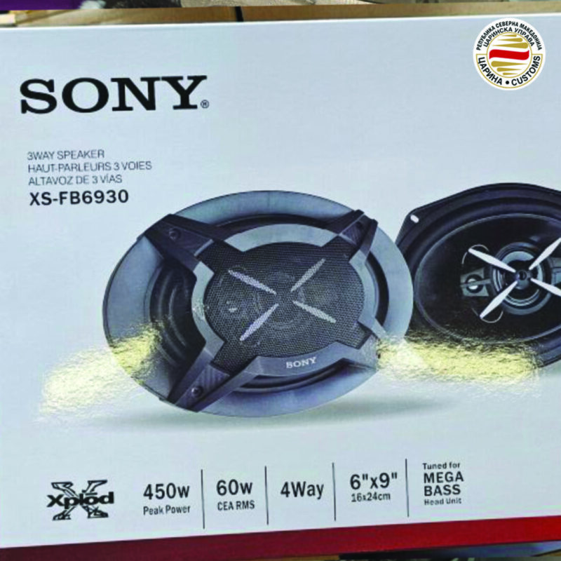 – 314 звучници и 9.000 светилки за патнички возила со ознаки на заштитени трговски марки, откриени од страна на мобилните царински тимови при контрола на стока со потекло од Кина сместена во јавен царински склад наменета за фирма увозник од Скопје. Производите се привремено задржани поради сомневање дека повредуваат права на интелектуална сопственост, и согласно законските прописи поведена е постапка за утврдување на нивната оригиналност. Вредноста на производите, доколку би се продавале како оригинални, е проценета на околу 2,2 милиони денари.