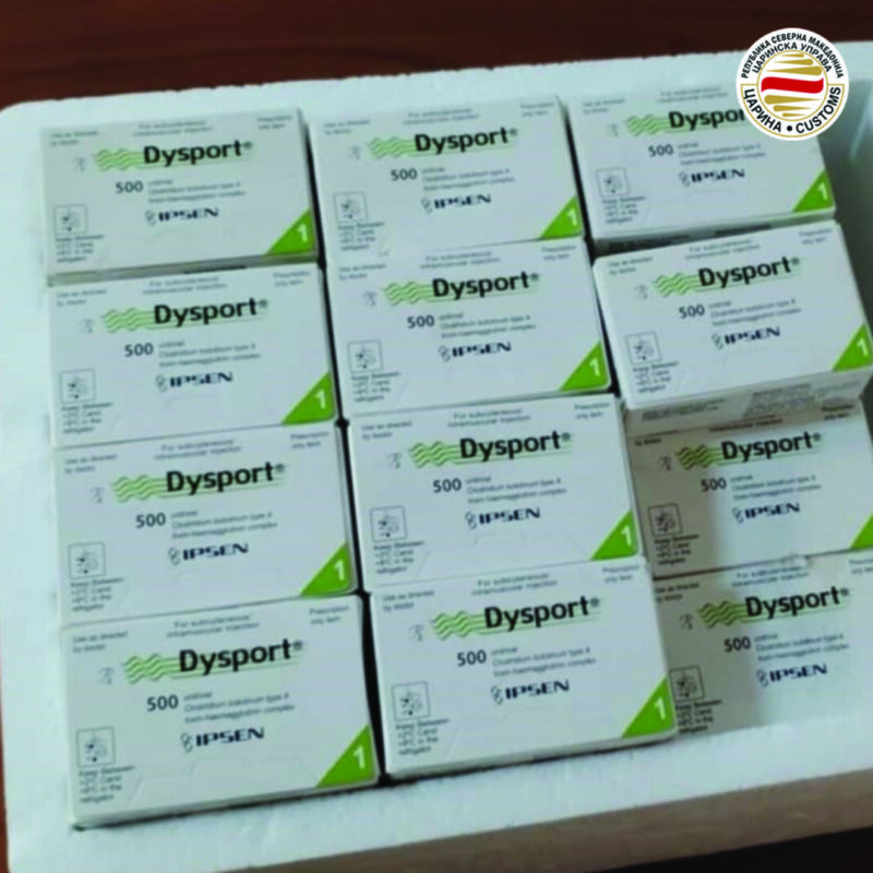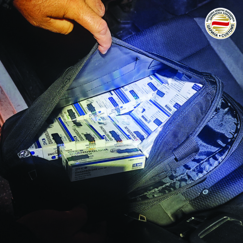 – 56 пакетчиња DYSPORT 500 mg, 18 парчиња Оxymetholone, 150 инекции тестостерон TITANS и 50 таблети тестостерон ТITANS, откриени во два одвоени случаи од страна на мобилните царински тимови.