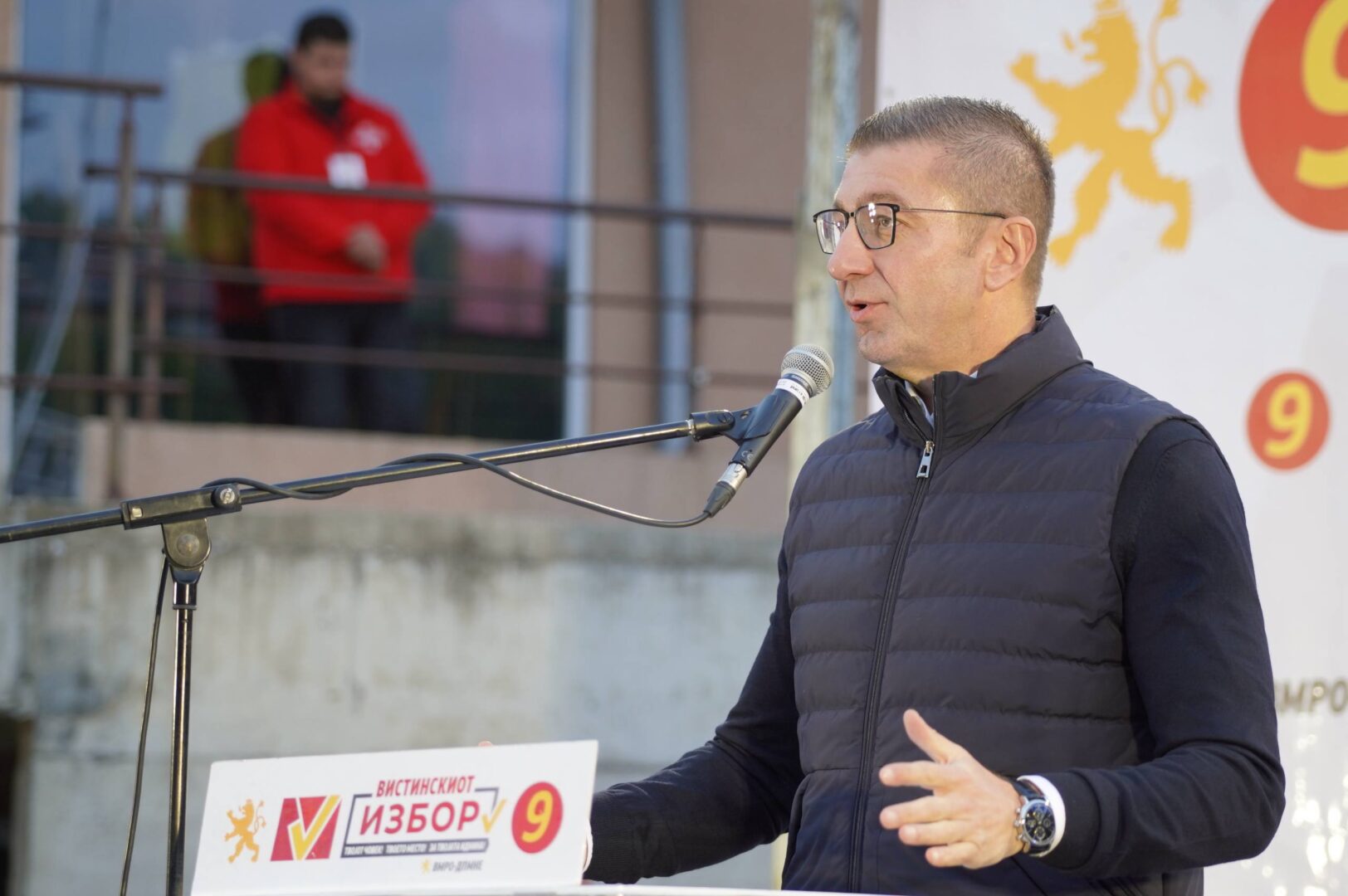 ,,Од првиот ден, заклучно со денеска, ние не слушнавме ниту еден проект, не слушнавме никаква визија, никаква стратегија, од нив не слушнавме како планираат и каде планираат да ја водат Македонија. Од нив слушнавме само три, условно кажани, политички пораки во оваа кампања. Првата е, црната кампања која што ја водат од првиот ден, па се до ден денес. Против мене се разбира најмногу и против ВМРО-ДПМНЕ. Втората политичка порака која што ја испратија е дека тие се политички наследници и претставуваат континуитет на тоа што претставуваше влада 7 години во Македонија, коалиција СДСМ-ДУИ. Третата политичката порака е дека тие се грижеле и се бореле за нашиот дом“, истакна Мицкоски и додаде: