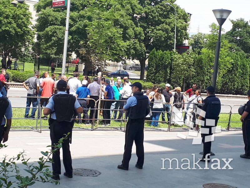 Полициски кордон го обезбедува кривичниот суд пред кој се собрани поддржувачите на Груевски, меѓу кои се и Ивица Коневски, бате Геле, а меѓу присутните може да се забележи и Александар Пандов. Груевски не е присутен на изрекувањето на пресудата.