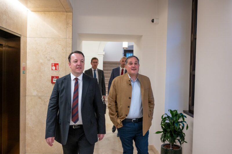 Вицепремиерот и министер за транспорт Александар Николоски во рамки на посетата на Унгарија, денеска оствари средба со министерот за национална економија на Унгарија, Мартон Наѓ.