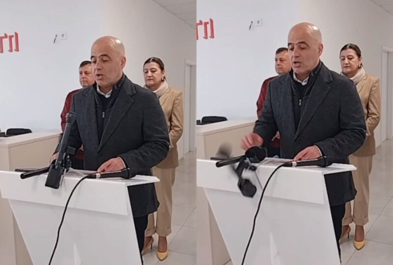 (Видео) Паѓаат табли, микрофони, паноа додека зборува Ковачевски, експремиерот денес не го побара Груби да ја крене таблата што падна