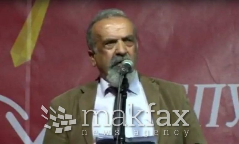 „Дојдов овде повикан од гневот однатре од сè она што денес го прават неколкумина поданици, безрбетници, неколкумина платеници среброљупци и еврољупци, предавници на родот, на јазикот и на крстеното име – библиска Македонија. Дојдов заедно да го кренеме нашиот глас за да чујат и да видат сите, сите да знаат дека оваа земја не е само оваа земја – туку држава со сите нишани, држава на еден исконски народ, суверена Република Македонија“, рече Димче Донески.
