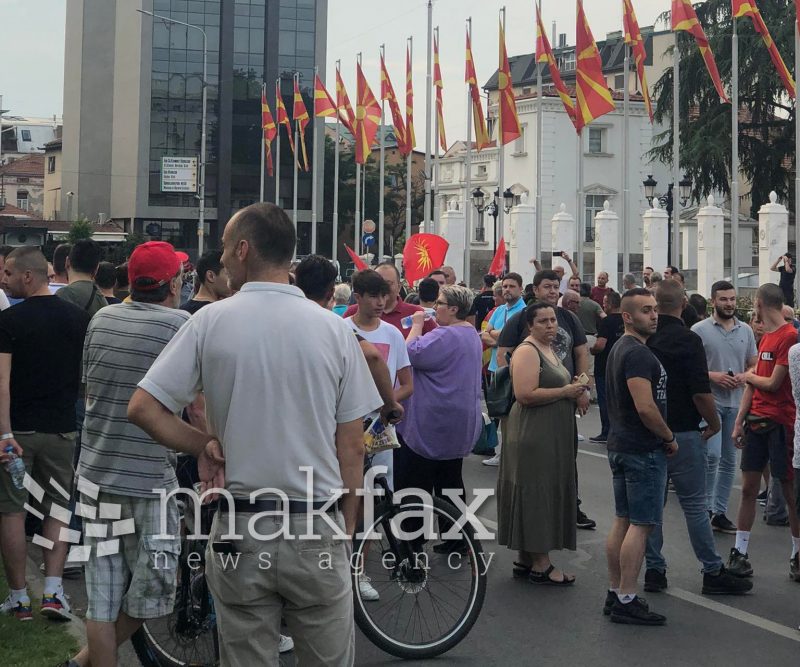 Граѓани се собраа вечерва пред Владата, за да изразат незадоволство од францускиот предлог за решавање на спорот со Бугарија. Повикот за протестот беше најавен на социјалните мрежи.