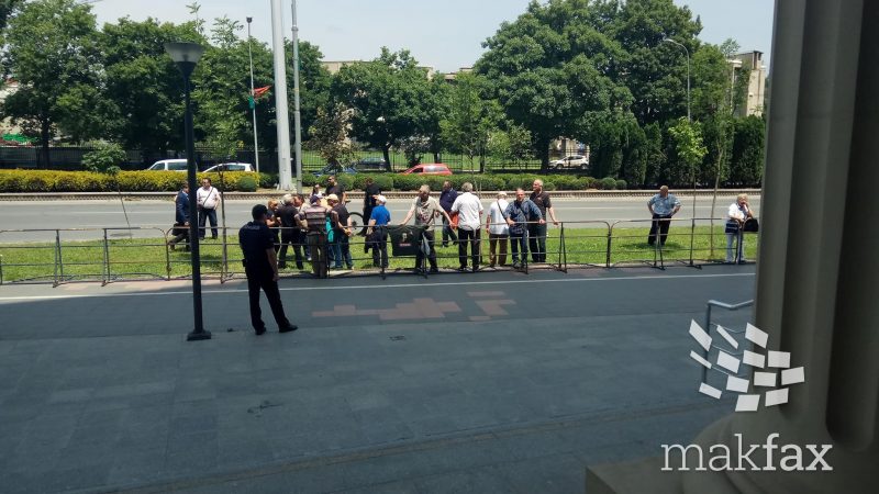 Пред изрекувањето на пресудата за поранешниот премиер Никола Груевски за предметот „Тенк“ на СЈО за набавката на екстралуксузниот „мерцедес“, пред судот се одржува протест.
