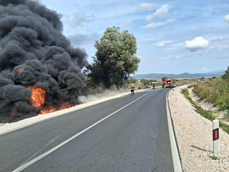 Се запали цистерна што превезувала нафта: излетала од патот Гевгелија – Богданци