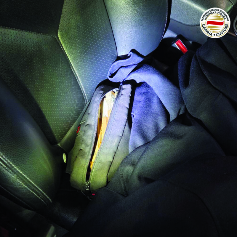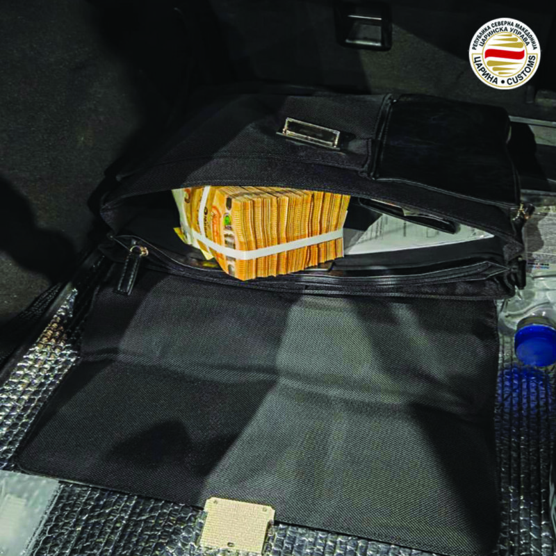 Поради сомневање во изјавата која ја дал патникот дека нема што да пријави и дека со себе носи помалку од 1.000 евра, царинските инспектори извршиле детална контрола на возилото и притоа на совозачкото седиште под машка јакна во црна рачна торбичка се пронајдени 44.000 евра, а во багажниот простор на возилото во црна кожна ташна биле пронајдени дополнителни 50.000 евра или вкупно 94.000 евра за кои лицето не поседувало документ за потекло на парите и не ги пријавило.