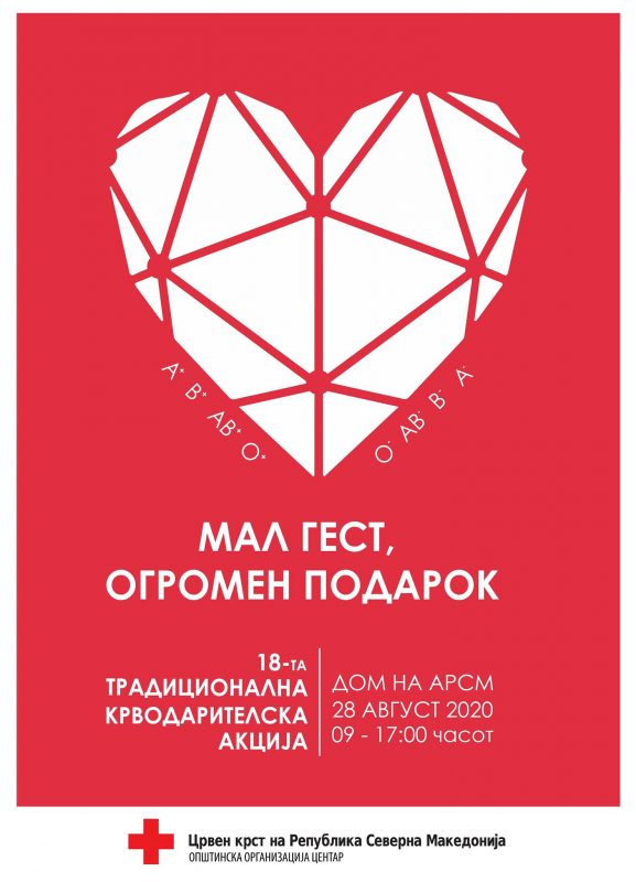 Црвениот крст од општина Центар и Институтот за трансфузиона медицина, на 28 август, традиционално, 18. пат по ред, ја организираат крводарителска акција по повод празникот Успение на Пресвета Богородица.