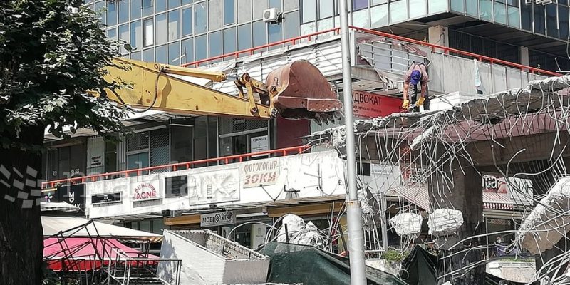 Втор ден екипи на „Македонијапат“ ја уриваат дивоградбата пред ДТЦ „Мавровка“. Доцна синоќа кај градилиштето бил донесен уште еден багер, па денес истовремено ќе се урива со две машини.