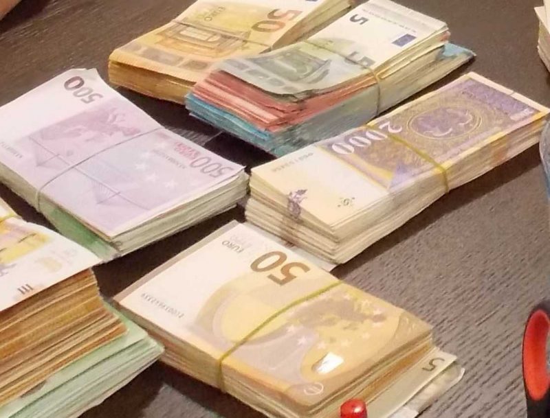 При извршениот претрес во домот на лицето, биле пронајдени и привремено одземени парични средства во вкупен износ од 47.095 евра, 603.000 денари и 250 швајцарски франци, детално опишани со сериски броеви, исто така одземени се 1 лаптоп, 1 десктоп компјутер и 2 мобилни апарати, како и голем број нделовна документација за извршени промени на правни лица во Централниот регистар.