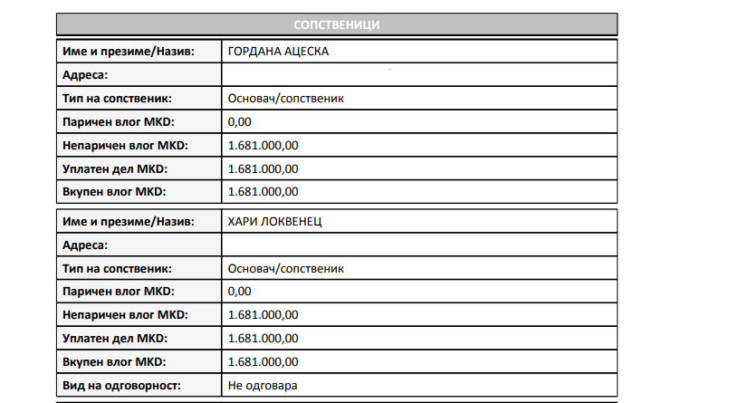 10 милиони денари од Фондот за иновации доби печатницата ,,Гинис” од Прилеп чиј косопственик е пратеникот од СДСМ, Хари Локвенец, заедно со Гордана Ацеска. Во изводот во Централниот регистар пишува дека станува збор за друштво со ограничена одговорност за производство, промет и услуги, со основна главнина од 5 милиони и 43 илјади денари.