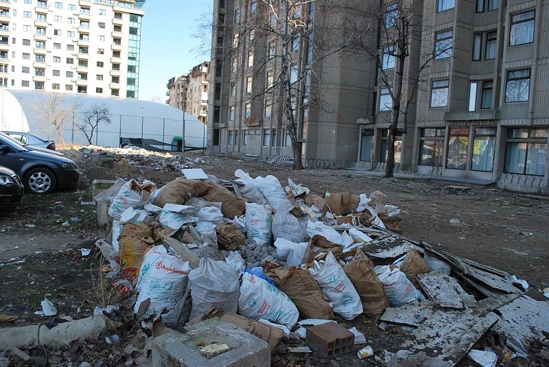 Во расчистувањето на големото количество градежен отпад од дворот на студентскиот дом, се ангажирани десет работници, додека од механизација се користат втоварувач, кипер и специјално комунално возило-патарка.