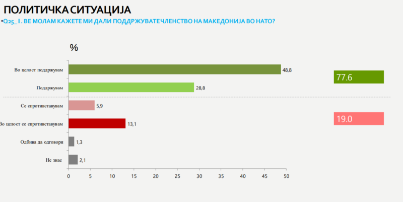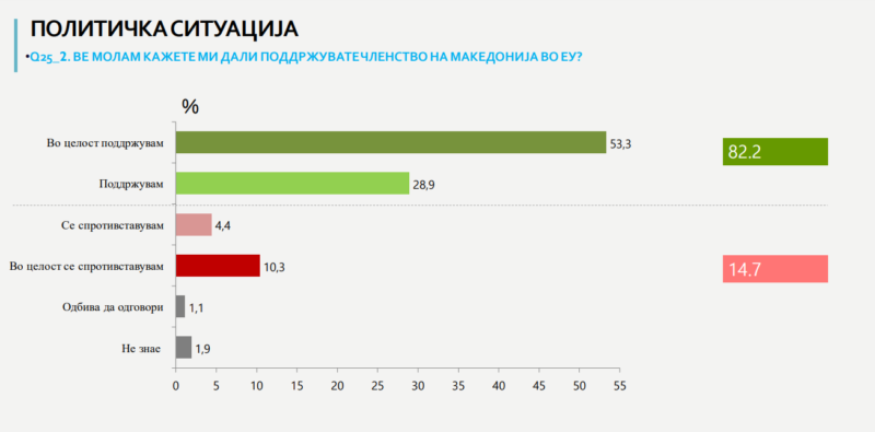 Согласно резултатите и понатаму останува висока поддршката на граѓаните за влез на земјава во ЕУ и НАТО.