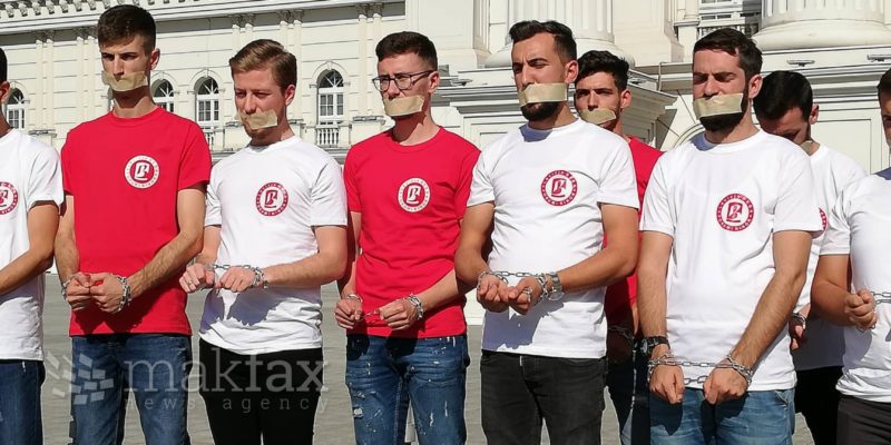 Активисти на Движењето Беса на прес-конференција пред Владата со ленти на устата и со заврзани раце симболично порачаа полицијата да престане со притисок врз нивни членови.