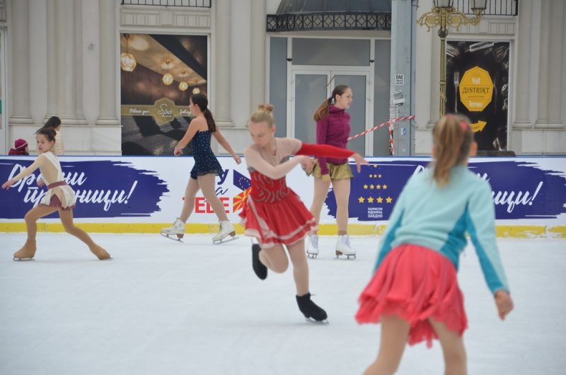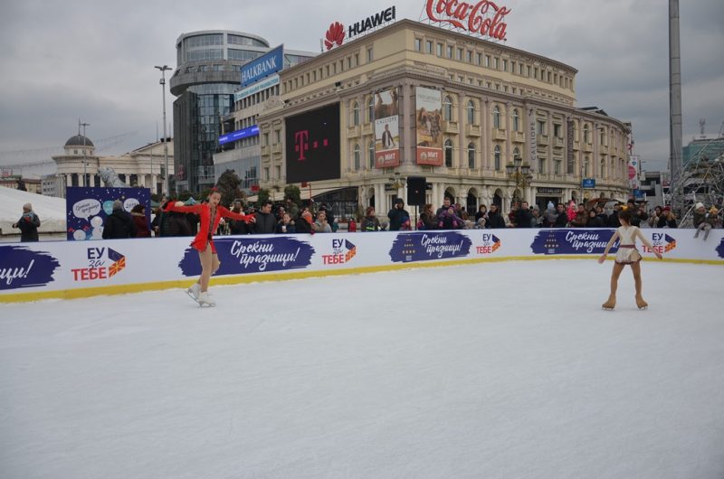 Вљубениците во зимските спортови ќе можат бесплатно да се рекреираат на лизгалиштето „ЕУ за тебе“ што е поставено на плоштадот „Македонија“ и е дел од новогодишната населба „Винтерленд“. Лизгалиштето за граѓаните го отворија градоначалникот Петре Шилегов и евроамбасадорот Самуел Жбогар. Први на мразот излегоа деца – членови на Федерацијата на лизгачки спортови кои ги покажаа своите вештини.